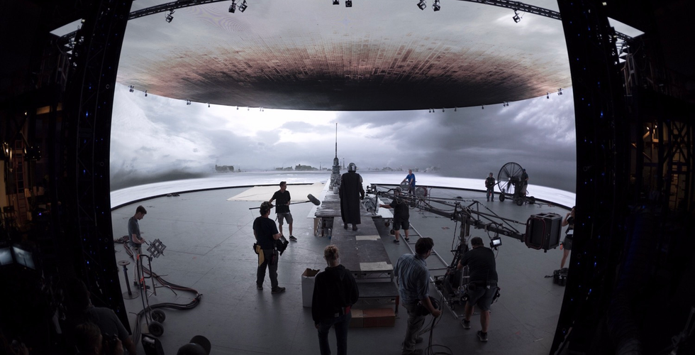 As we know, most CG heavy sets would use green or blue screens, for the backgrounds to be added in post-production, but that isn’t how the ‘The Mandalorian’ crew have done things. Instead, by teaming up with ILM (Industrial Light & Magic) and Fortnite developer Epic Games, a 20ft high by 270 degree semi-circular LED video wall was built to display the real-time 3D creation program known as Unreal Engine.